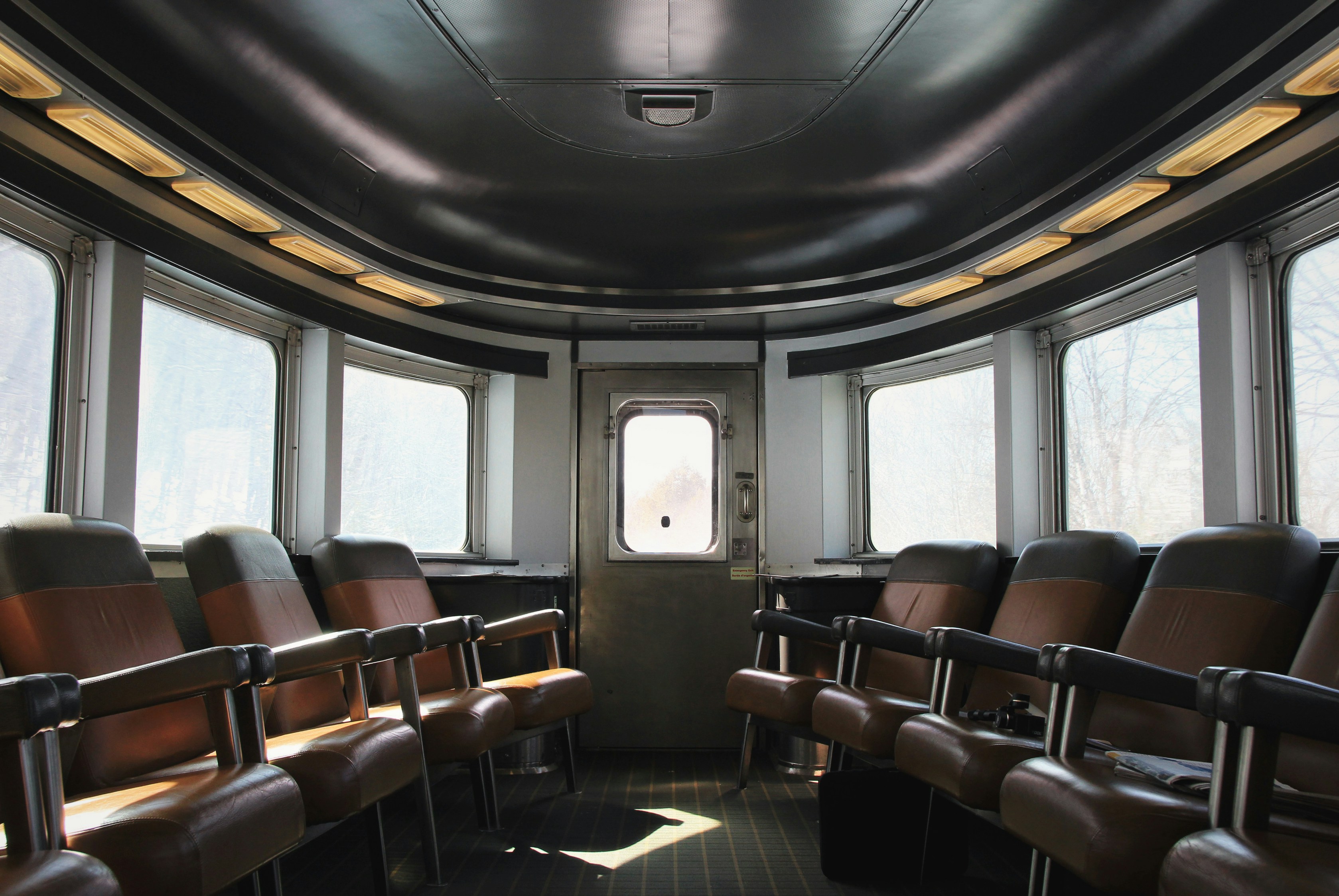 Le salon panoramique, qui termine la longue file de voitures de lâOcéan, est une invitation au voyage et à lâévasion.